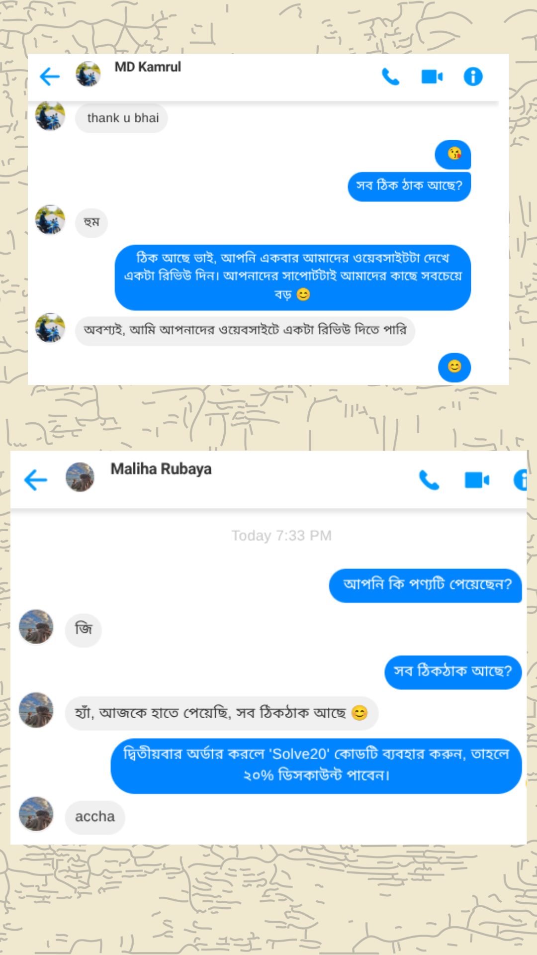 🔄 পণ্য হাতে পাওয়ার পর যদি ব্যবহার করার সময় কোনো সমস্যা দেখা দেয় – আমরা সমাধান করে দিব অথবা প্রয়োজন হলে পণ্য পরিবর্তন করে দিব।